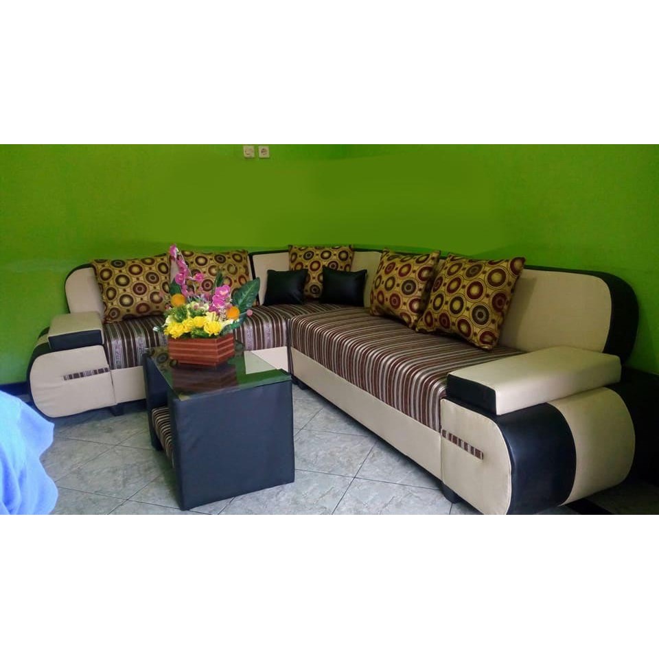 Perabot sofa minimalis modern yang dilengkapi dengan meja kopi berlaci ukuran p 120 cm x l 60 cm salah. Sebenarnya, ruang tamu kecil bisa dibuat dengan konsep lesehan agak kelihatan luas, tapi hal ini justru sering dianggap kurang sopan dan malah merepotkanmu saat membersihkan karpet atau alas duduknya nanti. Secara umum, desain sofa semacam ini memang tidak hanya terlihat menarik dan cukup unik. Namun, jika kamu sudah memilih sofa berbentuk l, disarankan untuk memilih meja tamu yang lebih kecil, agar ruang tamu tidak terlalu penuh. Bagian belakangnya yang mewah, dan bantal kursi diisi dengan busa untuk kenyamanan, dan pelapis 100% pasti akan menyatu dengan palet warna apa pun yang anda pilih.